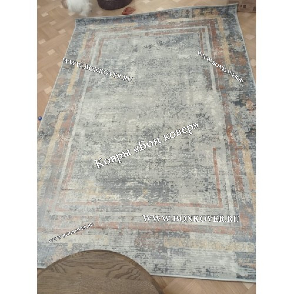 Отличный ковёр, качественный и очень приятно ножкам по нему ходить, без заломов, цвет бежево-серый с оттенком пыльно голубого