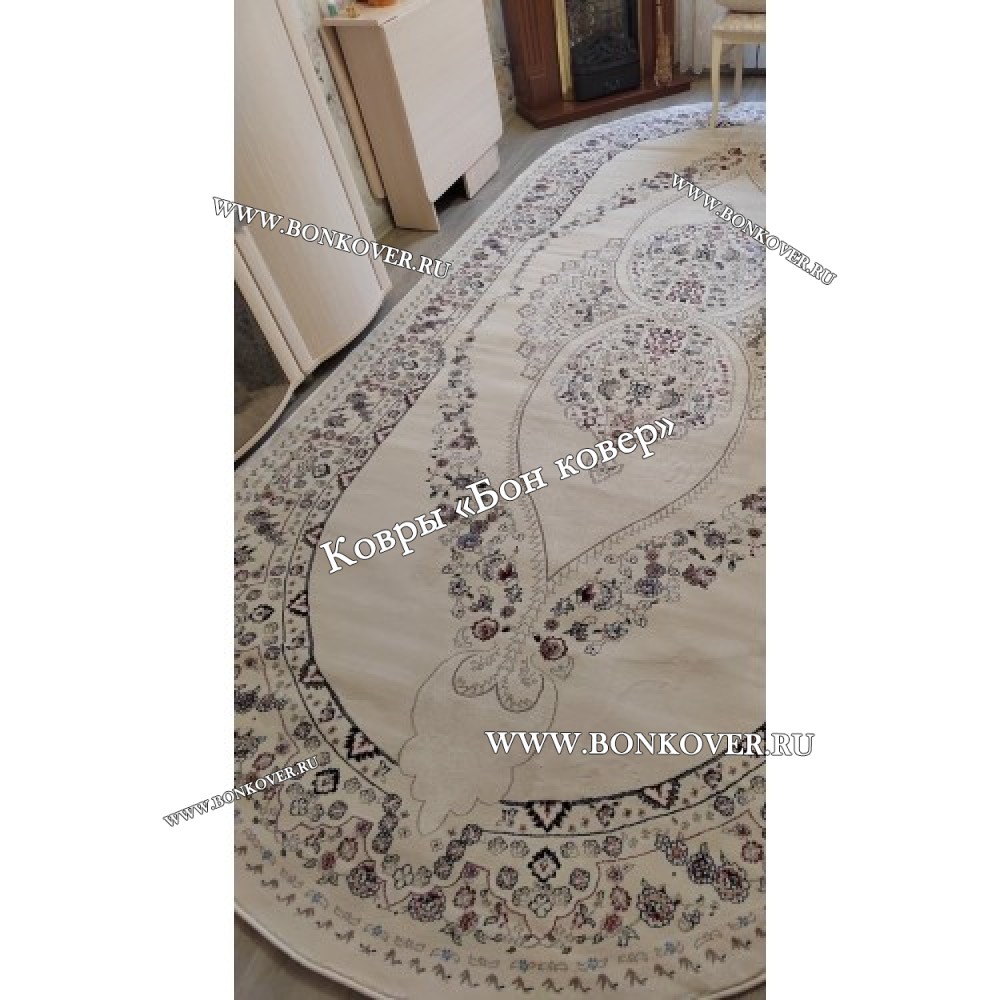 Турецкий Ковер Для гостиной дизайн 91 Овал станет превосходным дополнением интерьера, оформленного в современном или классическом стиле. Мягкое, но прочное, ковровое изделие обеспечивает тепло- и шумоизоляцию, отличается длительным периодом эксплуатации, надежностью, экологичностью и высокой износостойкостью, является отличной преградой от повышенной влажности в комнате и утеплителем для холодного пола. Благодаря качеству материалов, ковер не деформируется, сохраняет первоначальный вид под тяжестью предметов мебели. За его поверхностью легко ухаживать.
