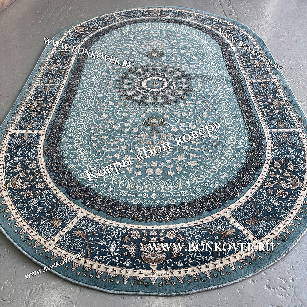 Турецкий Ковер Для гостиной New дизайн 376 Синий Овал станет блестящим дополнением интерьера, оформленного в современном или классическом стиле. Мягкое, но прочное, ковровое изделие обеспечивает тепло- и шумоизоляцию, отличается длительным периодом эксплуатации, пожаробезопасностью, экологичностью и высокой износостойкостью, является отличным противодействием от повышенной влажности в помещении и утеплителем для холодного пола. Благодаря качеству материалов, ковер не деформируется, сохраняет форму под тяжестью предметов мебели. За его поверхностью легко ухаживать.