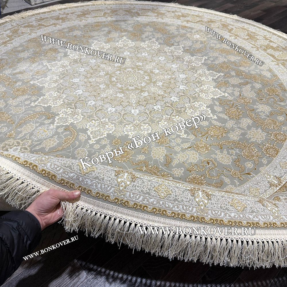 31.12.2020 Читать полный отзывНевероятной красоты ковер, действительно с белым оттенком, как будто седым налетом. Очень интересный замысловатый рисунок, просматриваются бежевые и серо-бежевые тона, просто украшение комнаты!) Огромное спасибо замечательной компании Бон Ковёр! Самая крутая компания☺️